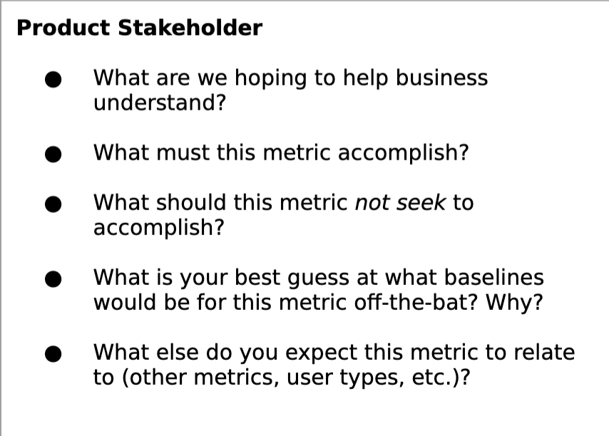 I think another crucial thing is making sure you get a sense from them of how they expect this thing will relate to other metrics and to other work that's being done around the organization.