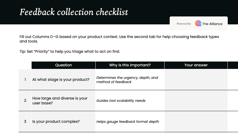 That’s where this feedback collection framework comes in. Whether you’re just getting started or looking to tighten up your existing process, this template will help you collect feedback that actually moves the needle.