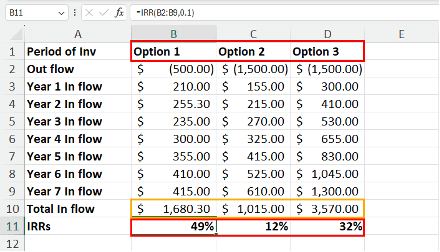 - Option 3: Generating a total income of $3,570.00 at an IRR of 32%.