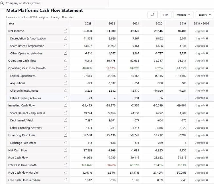 Let's look at the Cash Flow Statement of Meta.